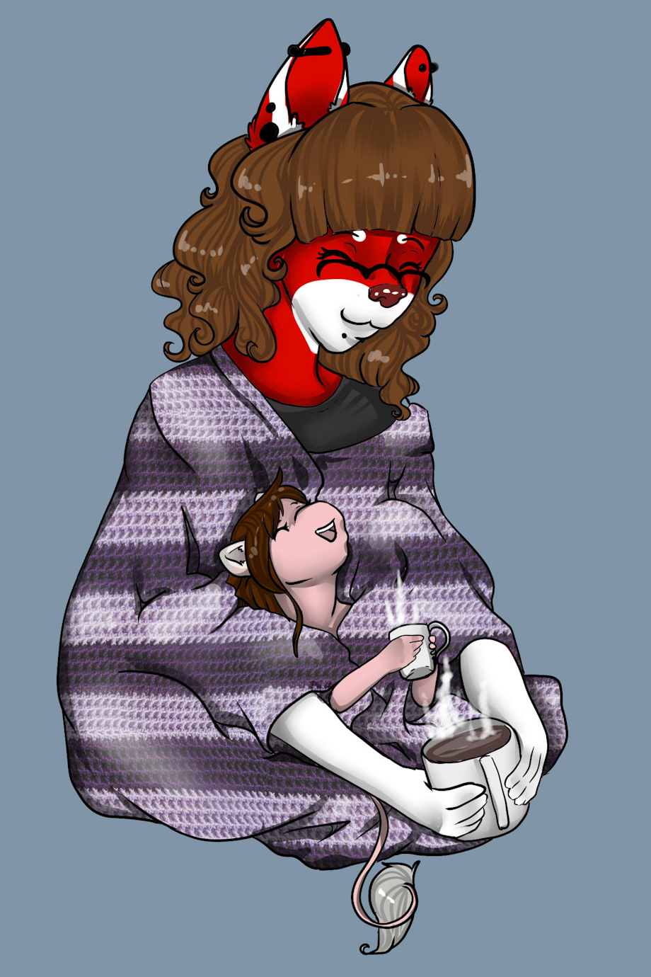 The second one has them snuggle with some hot cocoa. ^o^ A must have with the cold these days.