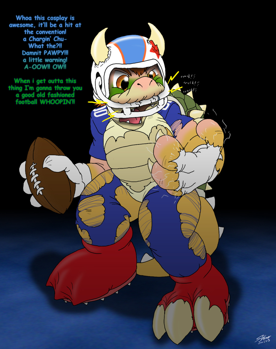 found out that my birthday was coming up and gave me a Chargin' Chuck costume, but he failed to inform me that it was cursed, and shortly after donning the costume I found myself transforming into King Bowser!