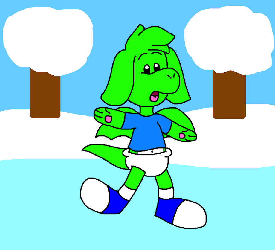 Alex the Fox, Helping Up a Patch the Dinodog on the Ice, and Patch Taking a Shoes Off and Putting a Ice Skates On For Him.