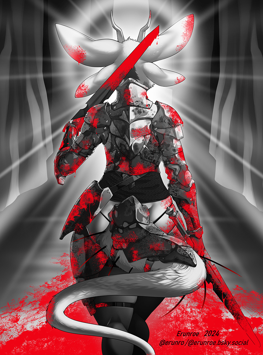 first attempt doing something more monochrome (except for the blood) of yari walking off after slaying who knows how many people.