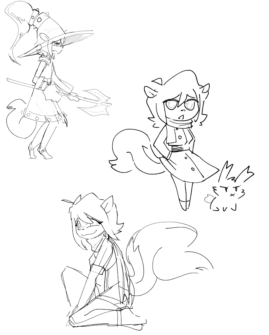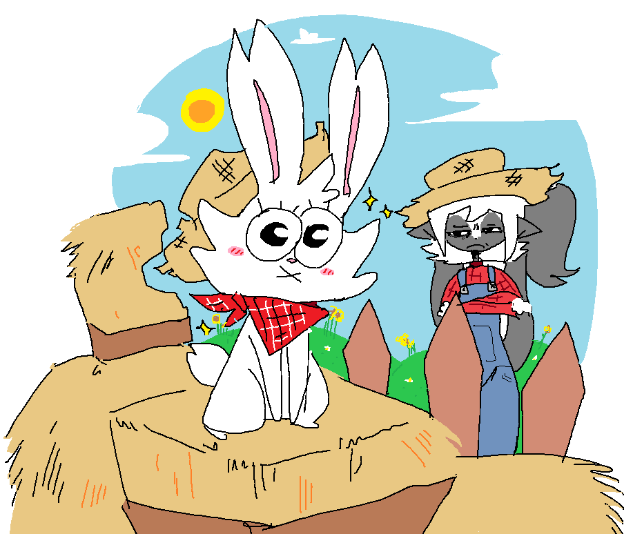 a collection of art featuring our anthro skunk character and her feral rabbit companion
