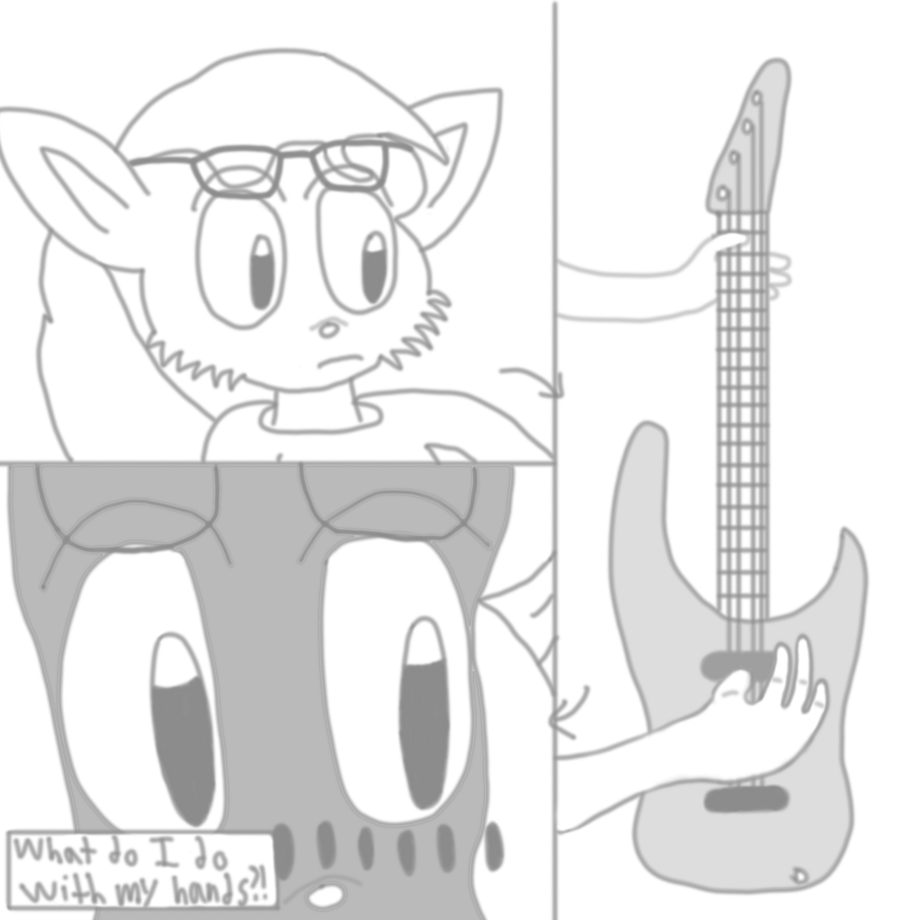 For next semester, I actually decided to take a 1 credit course that is practically just prepaid Electric Bass lessons. I picked one up for the first time at a music store not long before returning to campus from my November break and...yea this drawing captured the experience pretty well.