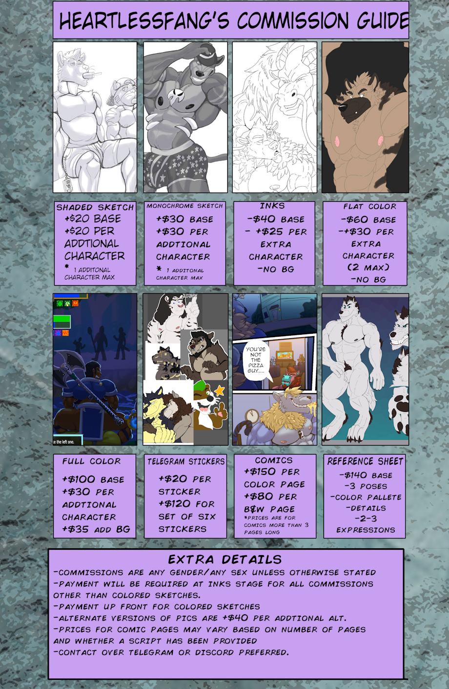 Reopening for commissions! Need some help with an upcoming surgery, so I'm going to try to take as much work as I can realistically to deal with bills until the surgery date. These arent first come. first serve, so message me on telegram or PM me to get a spot!