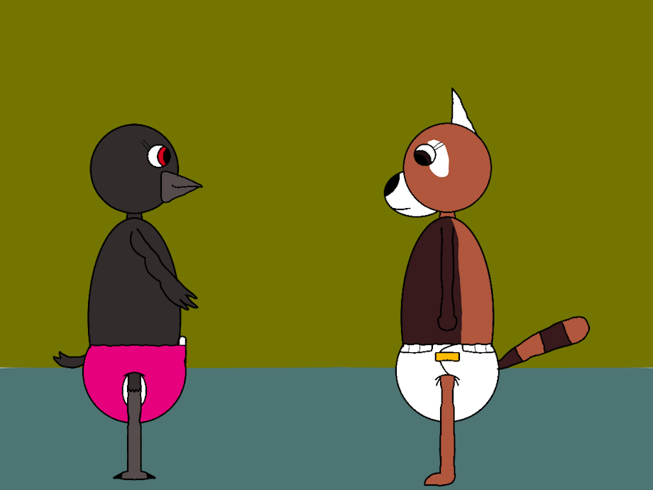 Eclipse is showing Ling Ling her diaper cover she wears when playing in the snow