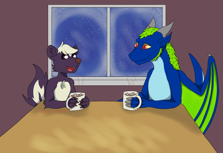 Drew this for Jakzie as thanks for the thing they drew for me! Razz is having hot choccy with Linda