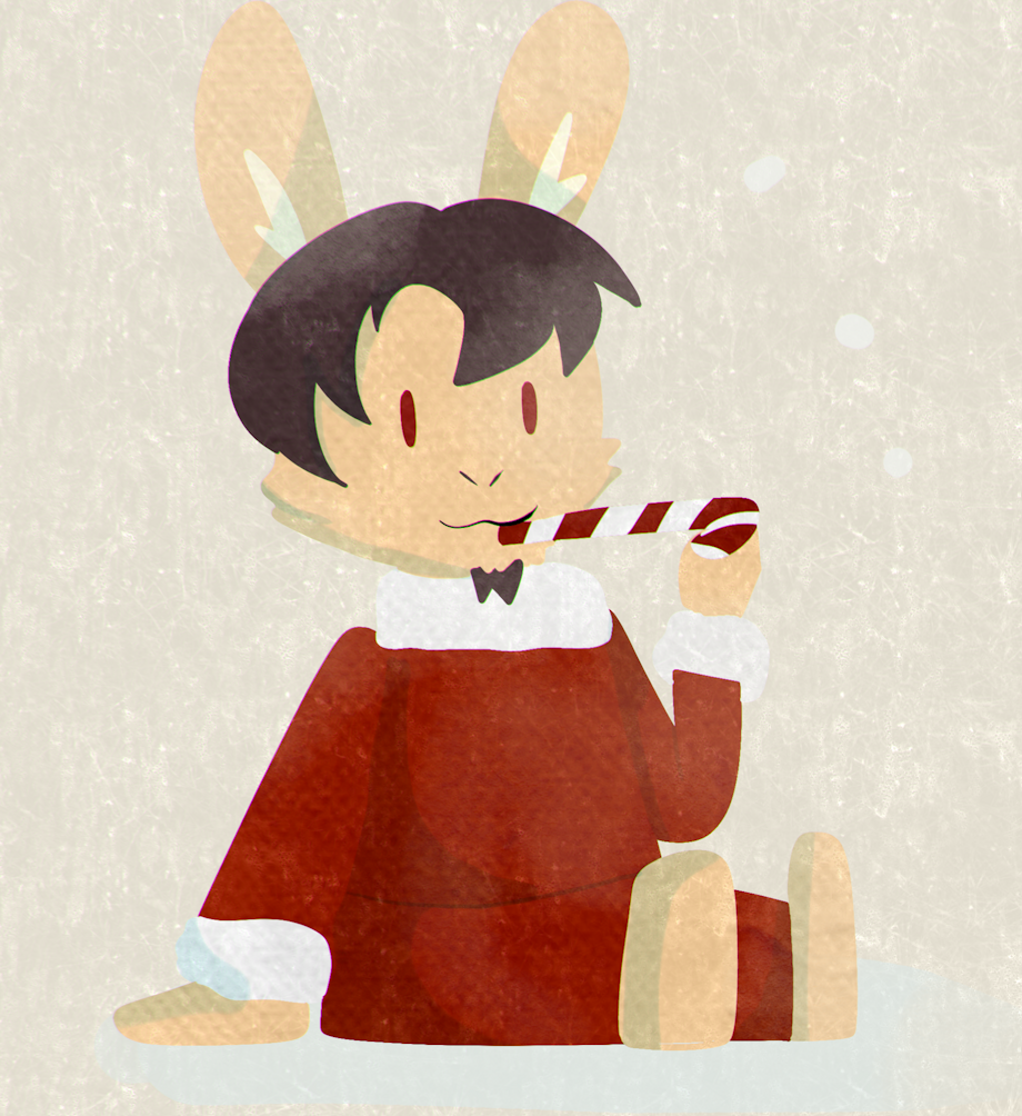 A simple drawing of my fursona in chibi form, and with a style that looks like a Christmas card.