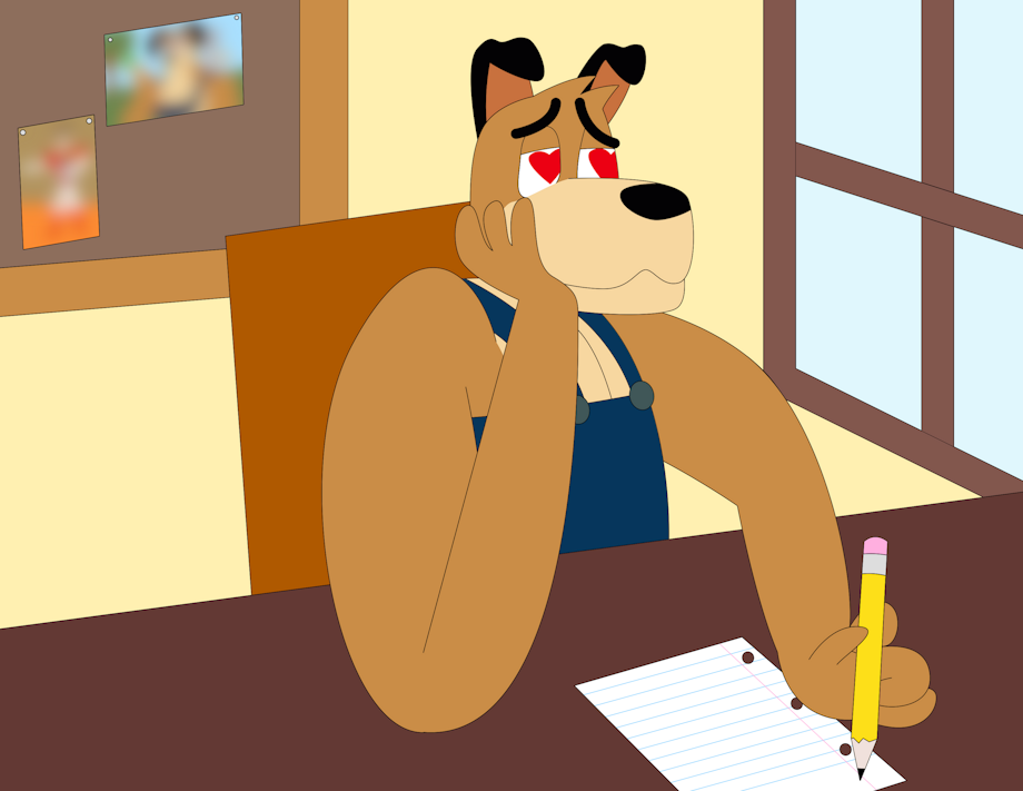 Dewy the Dog is daydreaming while writing a love letter in this.