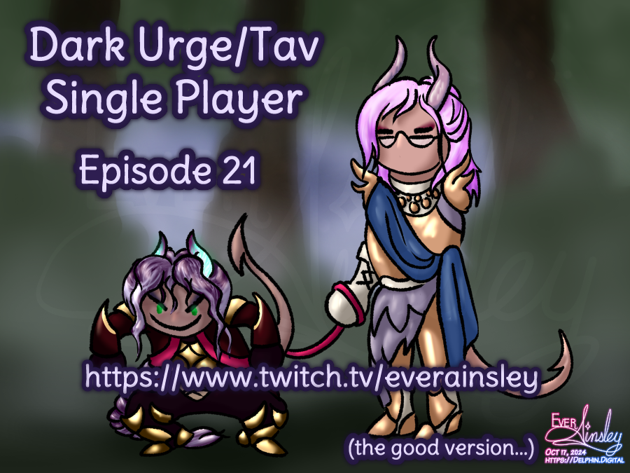 Hey there! I do a modded run Baldur's Gate 3 run on Twitch with a Dark Urge (Grief) and a Tav (Snowhawk, yes that one). It's game audio only, and we're currently in Act 3, so... spoilers beware! I start at 11 am, Eastern time, but the streams go live around 10:55 am (about when this will post) to give folks time to get in. The game audio only streams do not have on-screen notifications, but other streams do (and I'm working on more). I also have the Pokemon Community Game running in my chat, so every 15 minutes, a Pokemon will spawn in chat and you can try to catch it. :3 (Just type in !pokestart if you haven't already set it up on a stream).