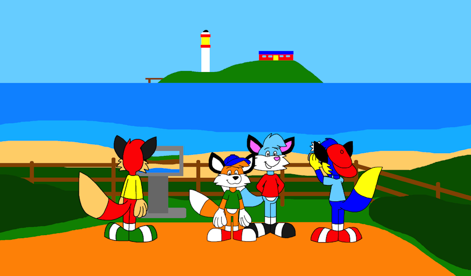 Alex the Fox Taking a Photo to Julian and Billy, and Vinnie See The View at the Beach.