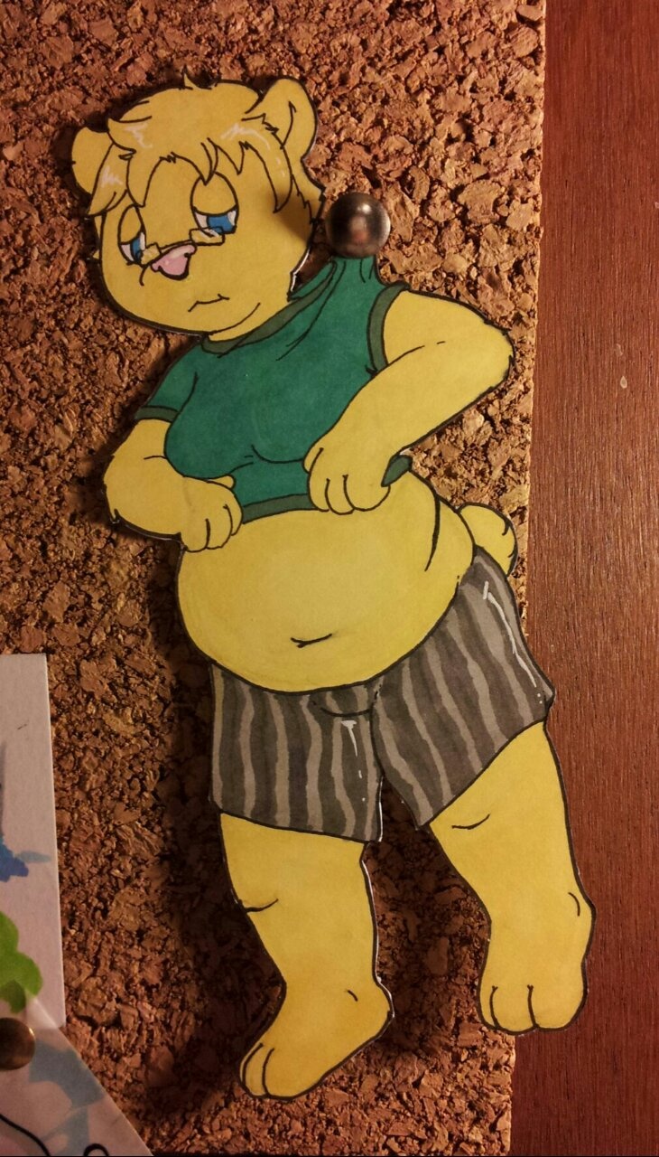 My cute bear friend is pinned up on my corkboard, so I can play with him later! :>