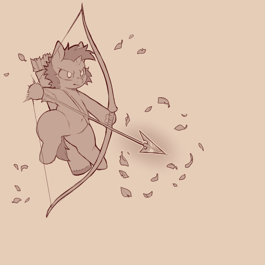 Of all the ponies who would have had a scissors sword- well, him and Rarity. Perhaps a bow would have been Applejack or Applebloom's for the William Tell reference.