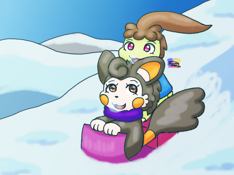 -Luna and Christina the Mimiga are resting, while they look at the park covered with snow.