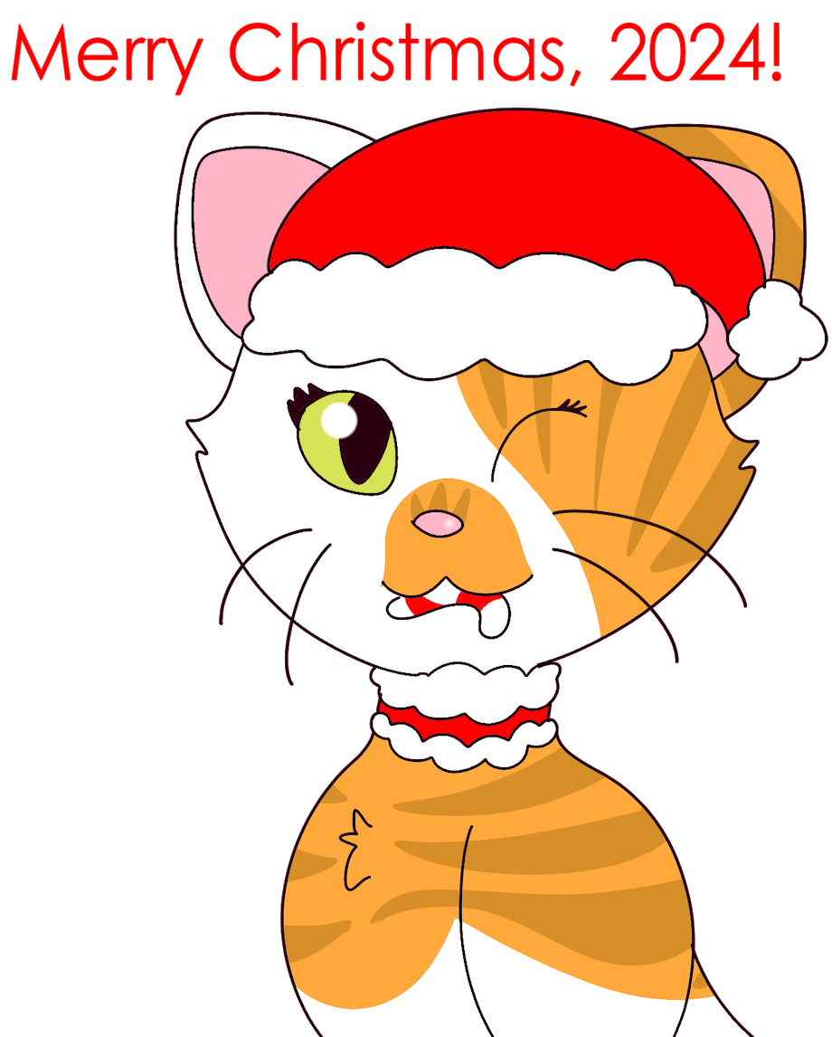 Yesterday, My Christmas Wish is Not to Have Cruelty Punishment in the Internet, Today I draw Carol the Cat wearing Santa Hat and a Candy Cane.