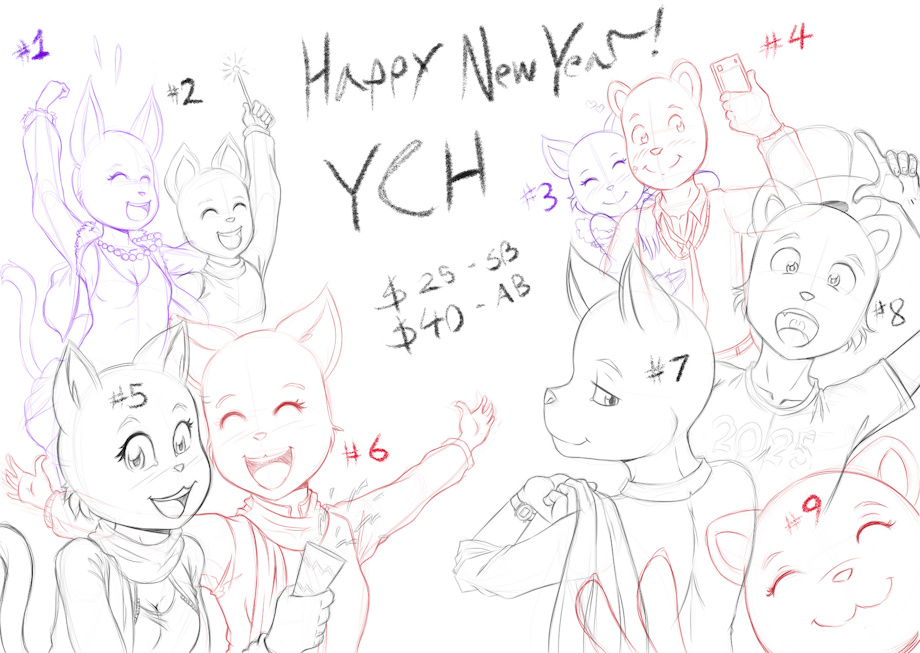 To celebrate the end of year I figure I try to do one last image to go out on! So this your chance to celebrate with others in this YCH group image. Theme will be a New Year's Eve party, with night sky and fireworks as a background added in. Image will be digitally colored.