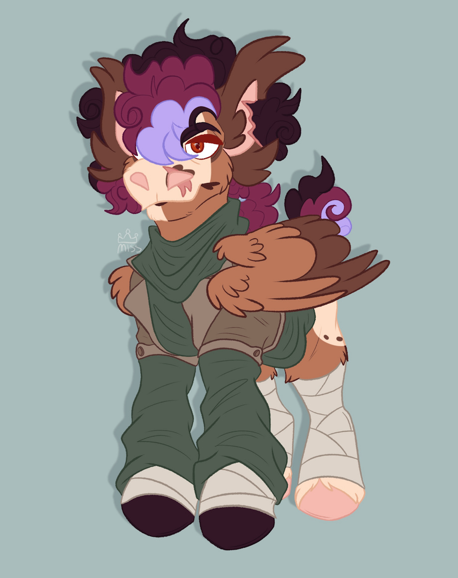 I enjoy apocalypse themes lmao. Probably won’t use this design much, but wanted to play around with the idea. Her tail is shorter and her mane is kept ponytailed. The scar and chunk taken from her ear were probably from predators not infected.