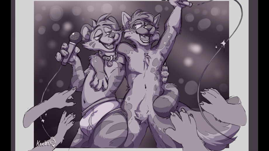 Here is another art I won in a free raffle. This artist is keebs and they ask me what do you want your character doing and who do you want with you. I said I want my character on stage preforming my comedy with my favourite twitch streamer tygre where she is singing and we just finished and we are making a peace sign ✌️. So this is what came out and I loved it so much and I’m even friends with tygre I care about her and she cares about me and no we are not a couple or dating just friends and we met at Vancoufur in Canada i said you should sing at the con and she did a concert best show ever. She has an amazing voice she is trans from male to female.