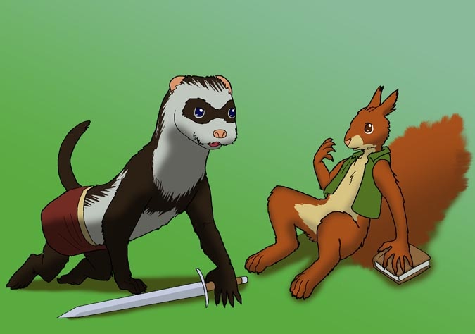 When the Redwall Shift happened, a ferret and a squirrel were caught in the wave of change. They found all sorts of ideas and concepts bubbling up in their minds, and medieval clothing appearing on their bodies, and weapons materializing nearby.