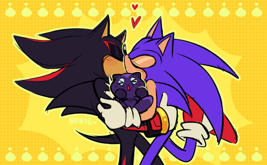 Oh, and they adopt a Chao. Why? Because I wanted them to have a child, but since I didn't wanted to make it an mpreg in this specific AU, I put them in charge of taking care of a Chao. It's the most canon way possible to have them raise a child together haha.