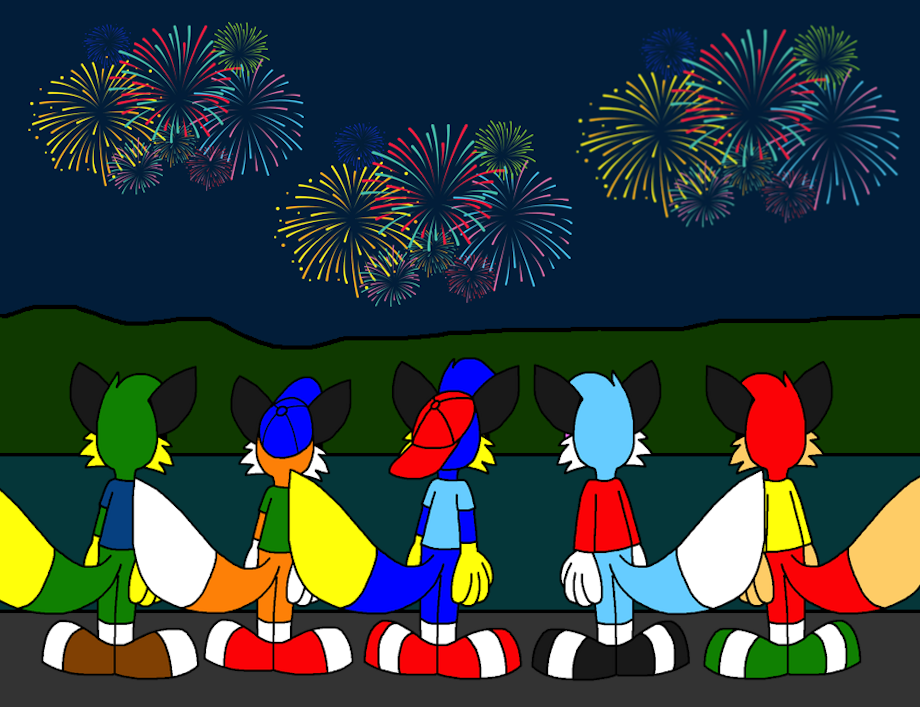Alex, Billy, Julian, Vinnie and Sid Watching a Fireworks Up in the Sky.
