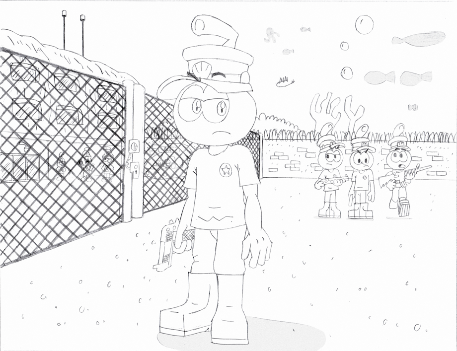 Corky at the police base, in a boring and hard day's work. Despite he being a workaholic, he has limits, can be tired and uncomfortable working too much.