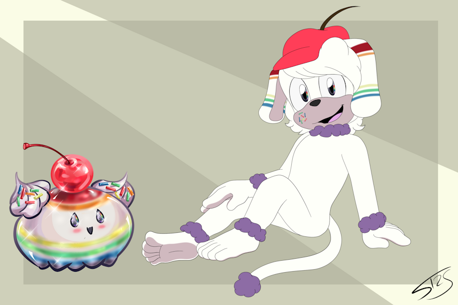 Nicknamed a 'Rainbow Puppy' slime due to his colorful stripes and inquisitive, friendly nature, Sprinkles took that to the extreme by making a poodle form for himself. He's always eager to meet people who don't care about his species, sometimes making him a bit too trusting. But good luck trying to milk money out of this pup--he does volunteer work as a stylist and makes his own clothes with his special ability, so he's always broke! Curiously, the cherry on his head is still part of his body, only made to look like a hat.