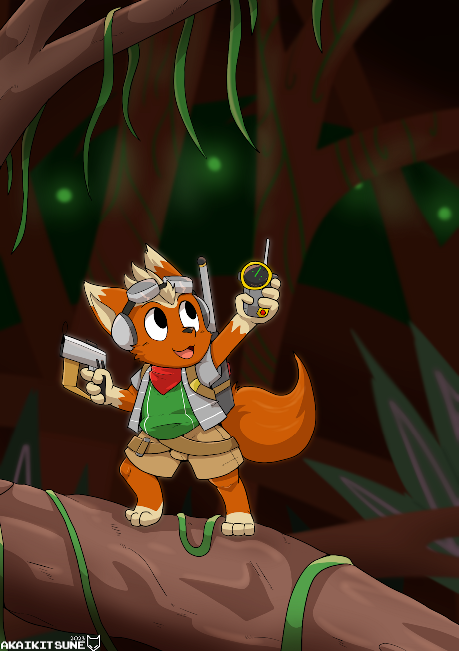 Dodger on a adventure through an alien jungle, what's he doing? Searching for treasure? Tracking an alien? Or just exploring for the sake of exploring? Either way the squirrel in his StarFox inspired gear is having fun.