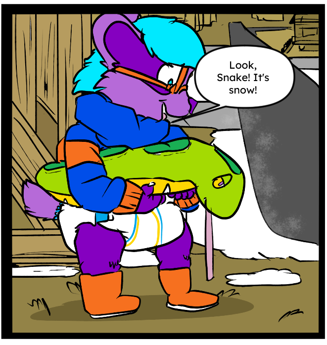Everett makes up with a messy diaper and when he is outside he has a clean diaper.