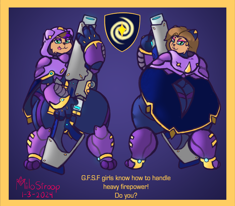 These two are Kim and Kayla, a pair of 'Sisters' I updated from my older OCs to fill the role~ In the Trunk AU, they were actually one person a soon to retire specialist in the Federation with a son named Kori who had also signed on. However, their final mission got them exposed to an alien artifact that caused her to be split into two people, turning the 42 year old into a pair of curvy 22 year olds, barely older than their son! The process to reverse the effects took too long and caused them to be permanently stuck like this, but made both a deadly team given they share an innate psionic-telepathic link in both thought and feeling. Careful though, would be suitors, they are a package deal~