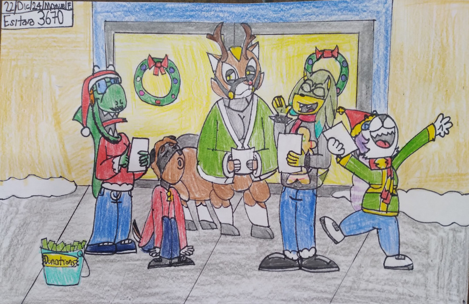 Pero bueno, esto era un dibujo el cual tenía planeado subir en navidad pero termine subiendo en Twitter y en Bluesky (que por cierto, deberían seguirme) pero aun así me siento orgulloso al respecto, pero bueno, este dibujo es un tributo al bumper de Cartoon Network City donde los personajes como Ed, Coraje, Eduardo, Profesor Utonio y Numero 3 cantan villancicos pero todos cantan una canción diferente que parece puro sonido...aun así me encanta ese bumper y pensé recrearlo con unos amigos...que tristemente no he podido comunicarme últimamente por razones personales pero va cambiar este año, lo promeso. Bueno, ¡que tengan un buen día y espero que hayan tenido una Feliz Navidad y espero que hayan tenido un Feliz Año Nuevo tambien! ---