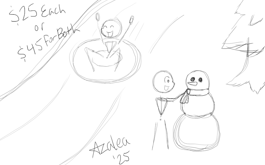 Decided to make a YCH featuring a couple young furs enjoying a snow day, one sledding down a hill, one making a snow person. Can do either just one for $25 USD or both together for $45 USD, both the tube and the snow person can be customized.