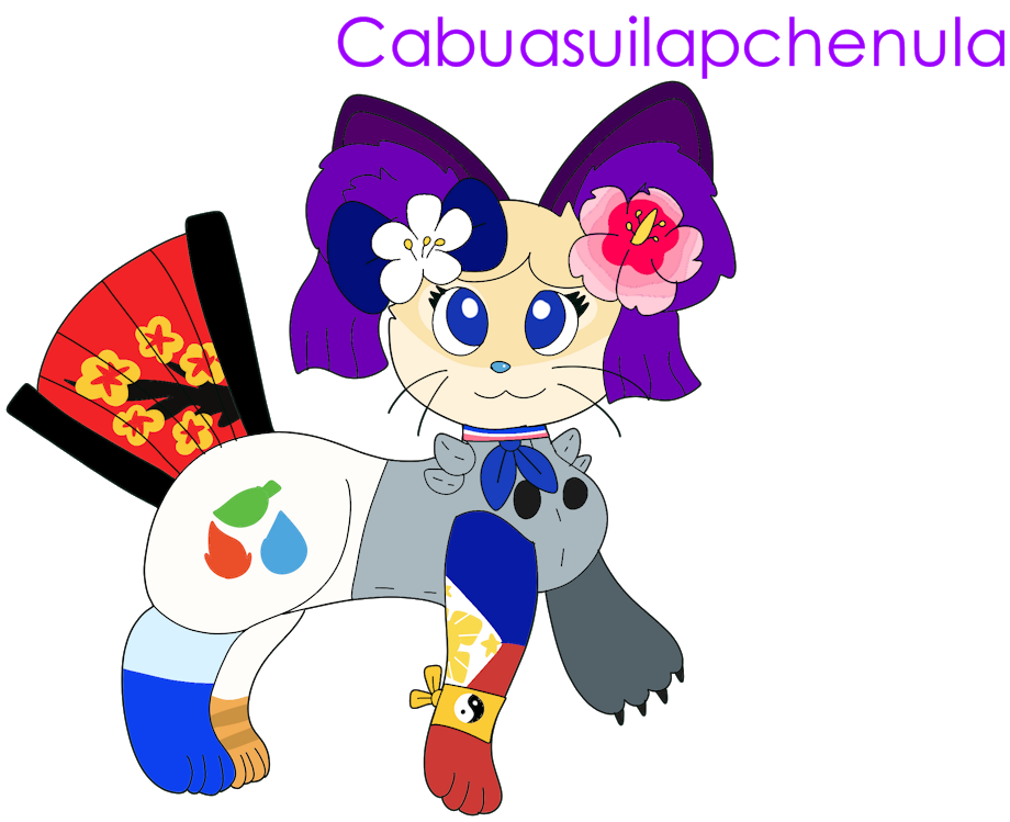 I would be described as Puspin Cat Countrynimal Watercat Peingatto Siamese Cat Kitsunet Pokefusion Panfan Hawaiian Monk Seal.