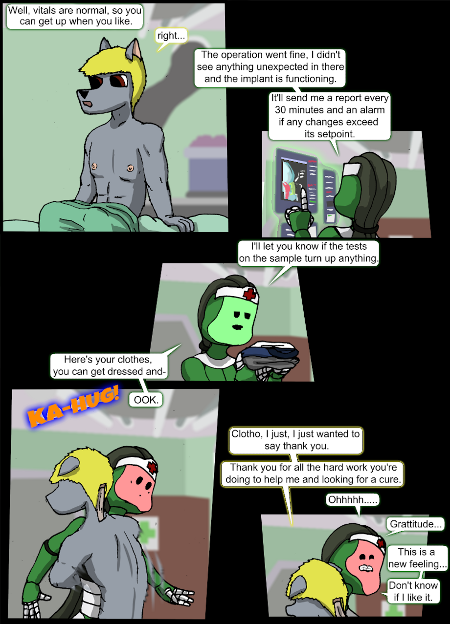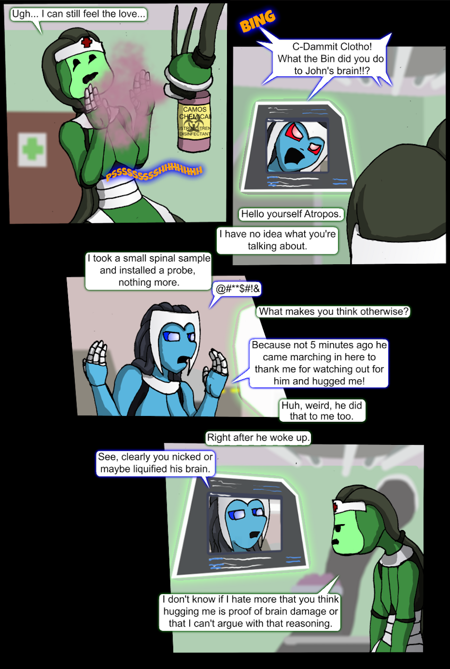 First draft I showed him hugging Atropos and not Clotho, I'm glad I changed it because it means I've now drawn him hugging all 3 of the station computers.