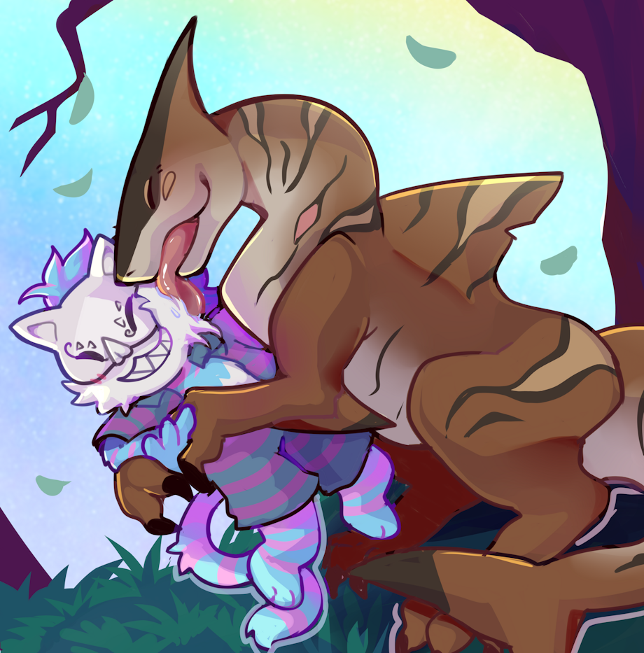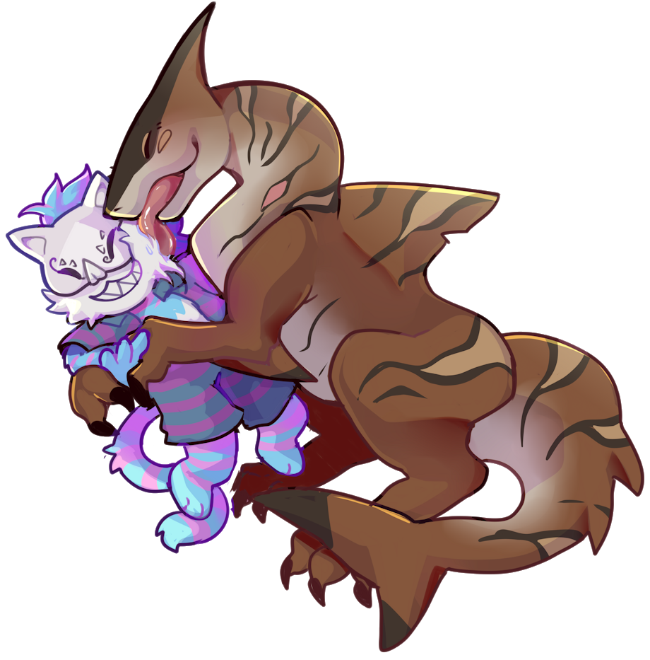Nobody knows for sure why, but somehow Zek the family pet of the Moon family is always really happy to see Harleking come by for a visite. So much so that it often ends with the huge sharkdino licking the chaos gods face like a puppy would.