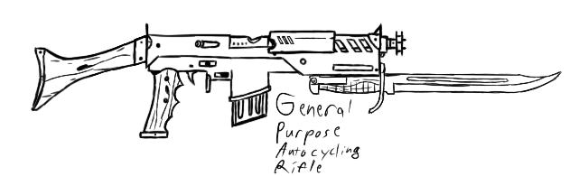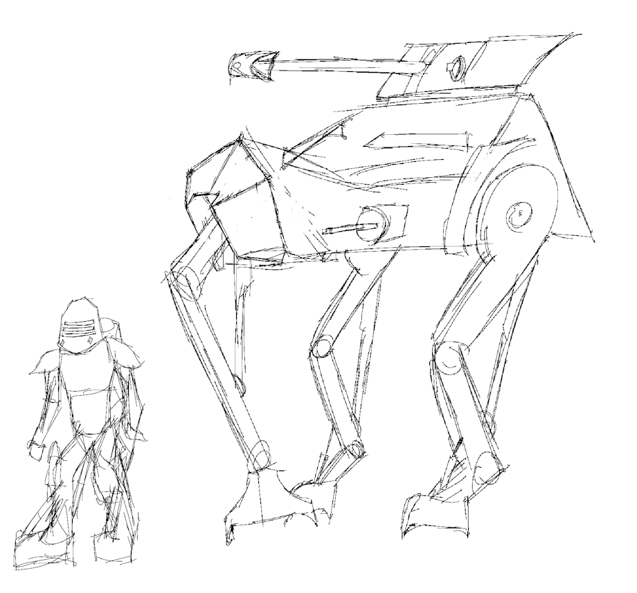 File 1: Hydraulic trench battle armor and a walking tank destroyer Files 2&3: GPAR sketch File 4: Bowie knife File 5: Trench Fox handgun Files 6&7: GPAR model WIP