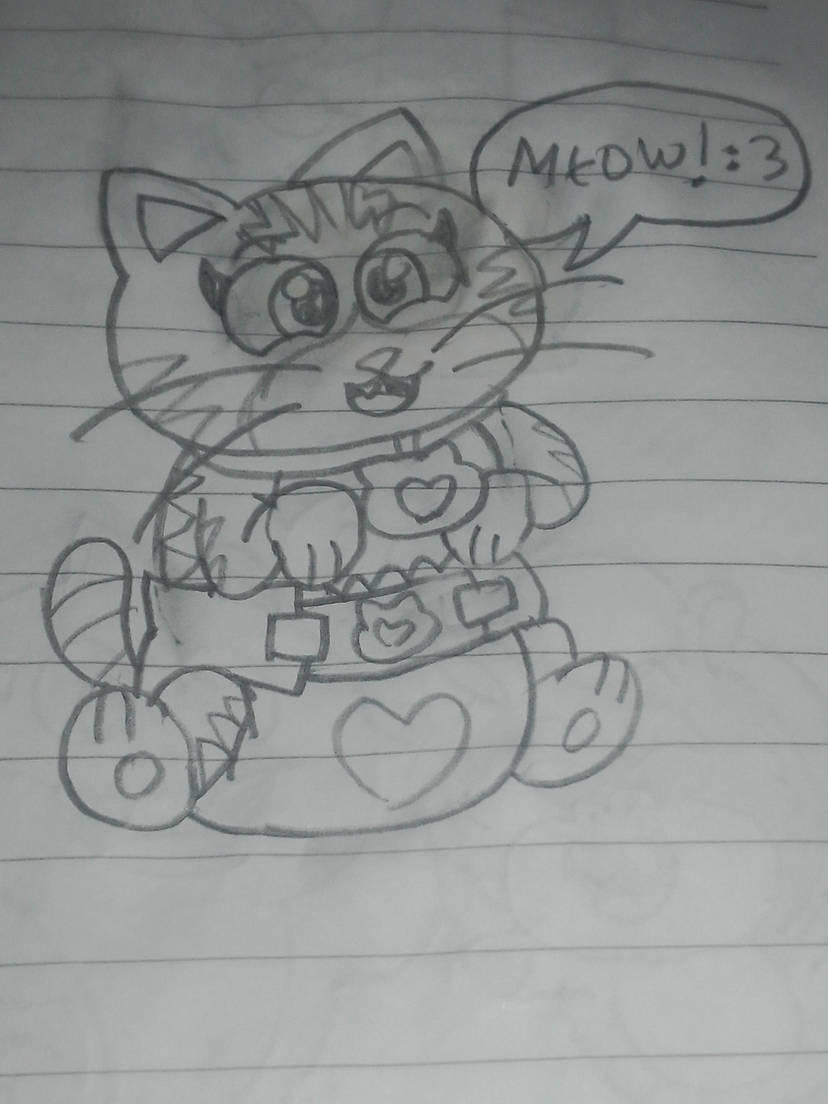 Ginny is wearing a Superkitty Poofs-branded diaper and meows cutely.
