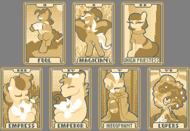 Some of my work on my Balatro mlp mod, working on the tarot cards~