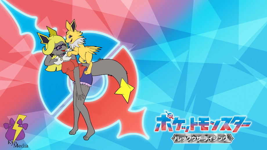 Soooo, a while back a user on Twitter Legacy3211R did their best to recreate the background of the midcard in Pokemon Horizons. It was free to use, and as a HUGE fan of both Pokemon and Horizons in particular, I had to make my version of it of my sona, and Luxury, my Jolteon plush I started to bring around starting last year. Luxury also happens to be my Jolteon from my run in Pokemon Scarlet, so of course I had to rep her.