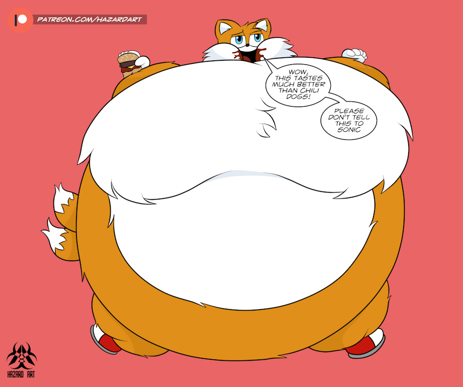 Done as a commission by HazardOArt on DeviantArt Tails discovered chili cheese burgers, took a bite, and became addicted to them. He will binge on those burgers for the rest of his life. However, Tails is telling you guys to not tell Sonic or else he'll freak out.