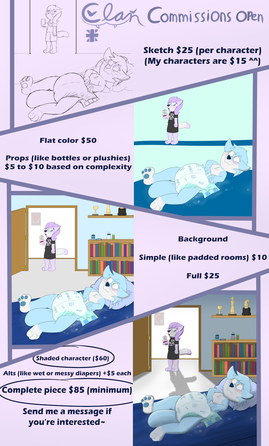 I have reduced hours at my boring day job and bills to pay~ Send me a DM if you're interested! Feel free to ask me about what I'm willing to draw. ^^