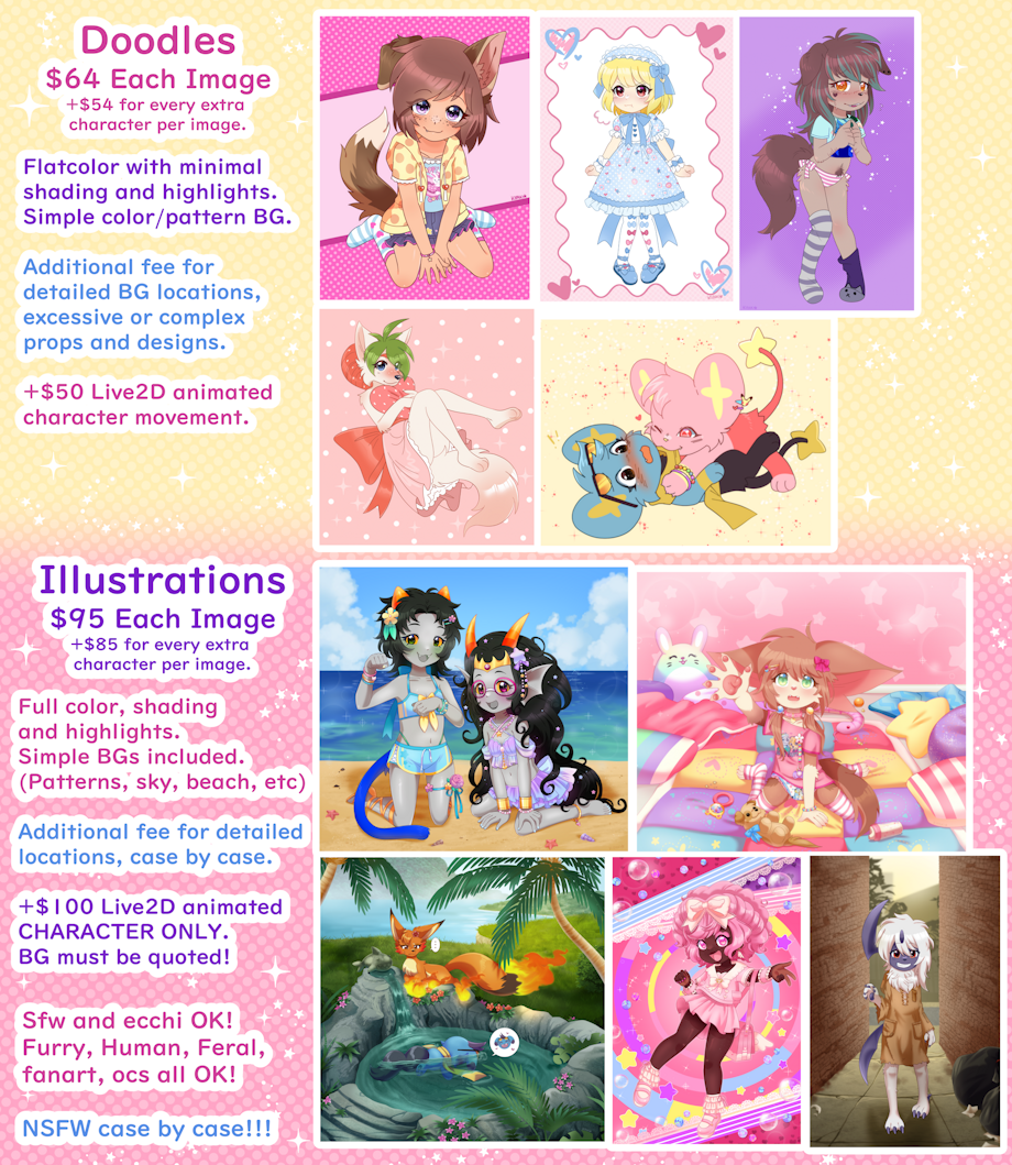 I can do ideas you have or artist directed/artistic freedom with a prompt or theme like (cute smiling, this outfit but whatever pose, etc)