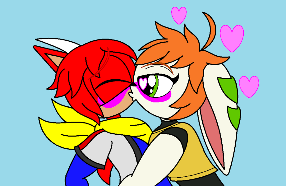 A Hound smooching on a dragon hedgehog to show how much she loves him.