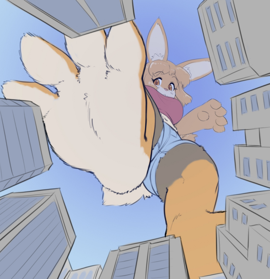 These new bun designs are neat for POV! Super cute take on those big paws, too. I like how fuzzy you drew them, and the lighter fur on the bottom is great too. Cute leaning over a bit to see below her (...and her massive chest), plus a view of her big chunky pawhand as well!