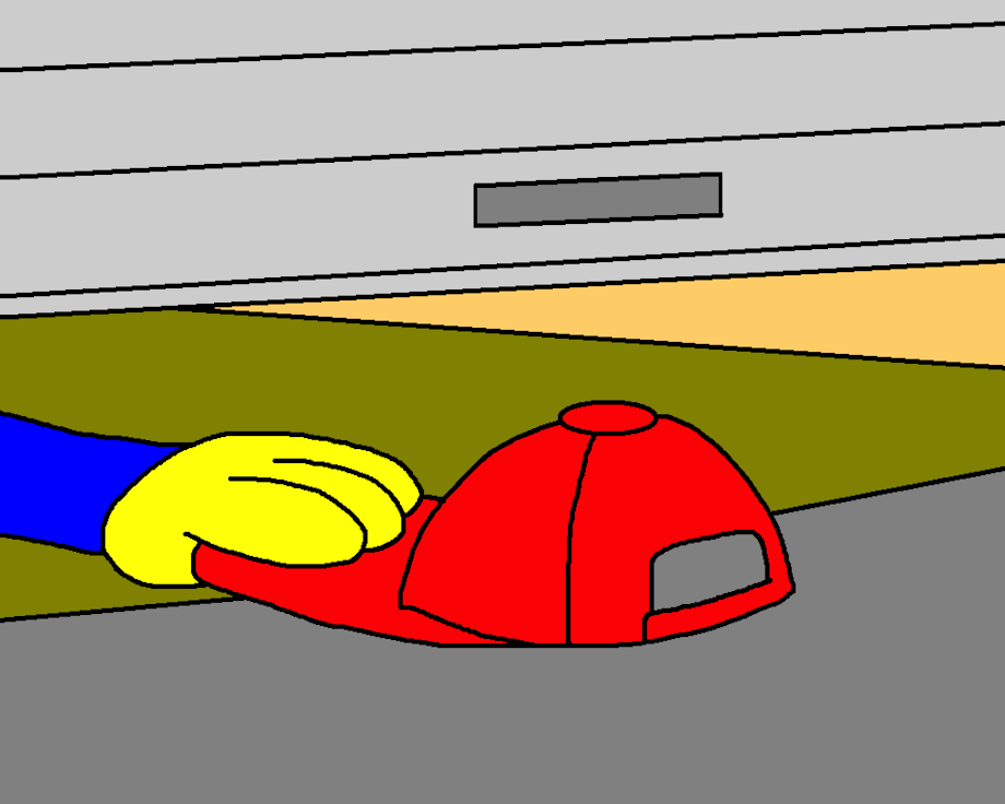 Alex Grabbing a Hat and Closing Down a Garage Door