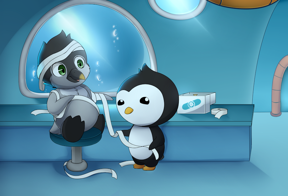 After seeing how amazing of an octonaut his big brother Peso was, Pinto and I got into his brother's medical supplies and he wanted to test wrapping bandages on me. I'd say he is doing pretty well so far! ^v^