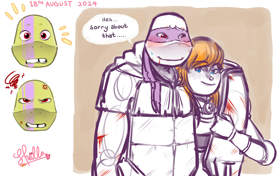 I created my TMNT Fantasy AU on my tumblog featuring my design on Knightess April Harriet O'Neil and Tribunal Acolytes Turtle brothers especially Tribunal Donatello, set in medieval times. Facts: My Knight 12 April design is hugely inspired from an anime show called Shoujo Kakumei Utena (i really adored the characters designs and their outfitsπππ) and this TMNT fantasy AU are hugely inspired from many fantasy-themed movies such as Narnia, I am Dragon, Nimona, Wolfwalkers, Song Of The Sea. Thank you for viewing my doodles!