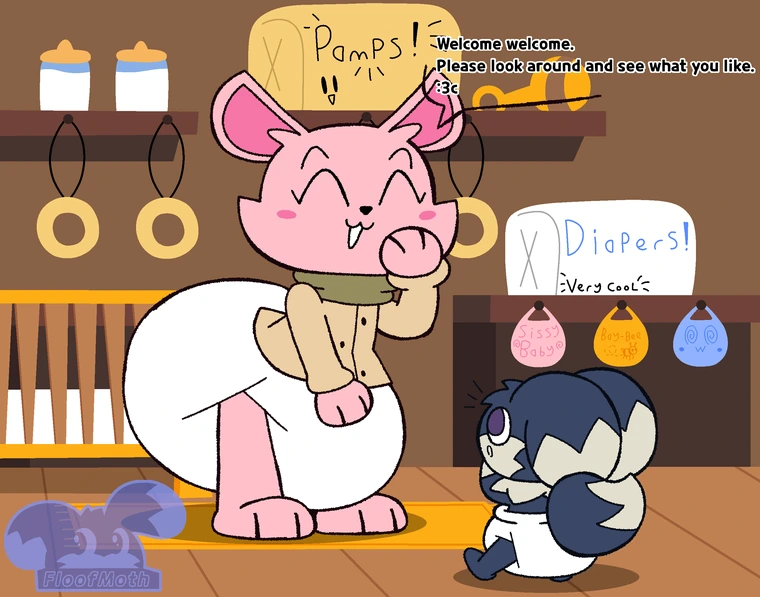 The Honeydew shopkeeper seemed so pampable that when I got the win from https://www.furaffinity.net/user/floofmoth316/ raffle I decided that the bear would be a good idea. Isn't it cute? She's selling some mega cool baby products to the little Floofkin (A Floofkin is a species made by the artist) This is where I posted it first https://www.furaffinity.net/view/58270323/