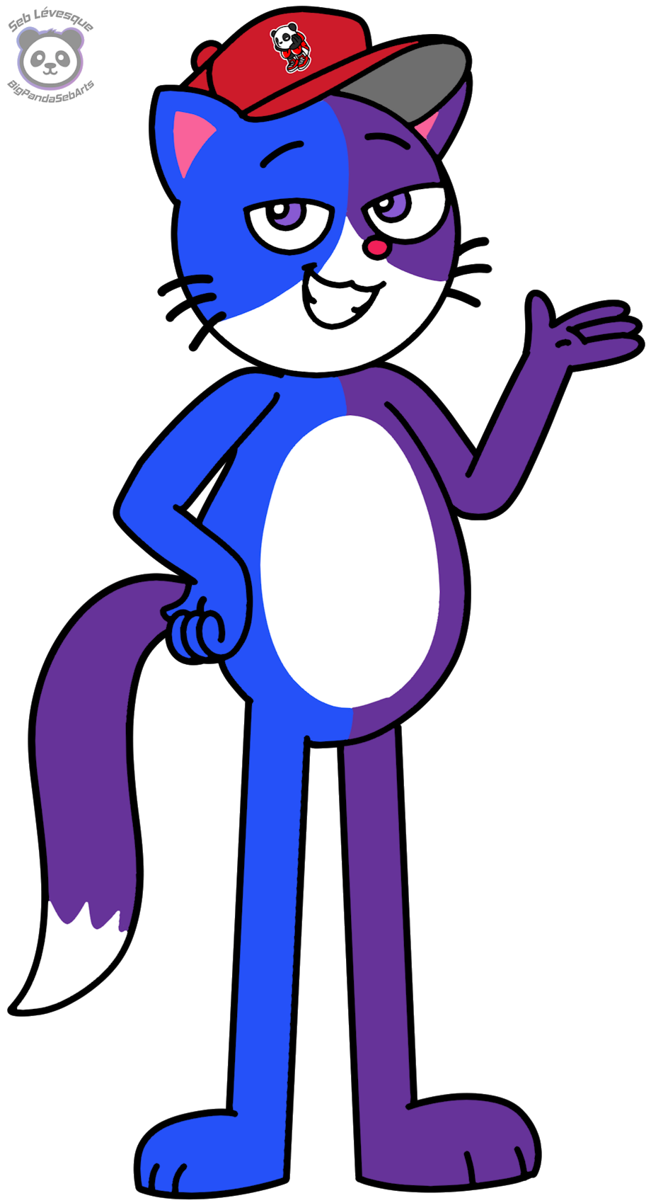 Here's an unamed cat I created by myself as a new oc. He's similar to Sebby the Panda as he's bicolor on all the body: RISD blue on the left (2551F8) and Rebecca purple on the right (663399). He's a nice and handsome cat who like playing, eating, reading and doing other stuffs. He's now a new member of the Trio of Creativity with Mr.S, PonySeb 2.0, Creative Bear, Rebecca et Sebby le Panda.