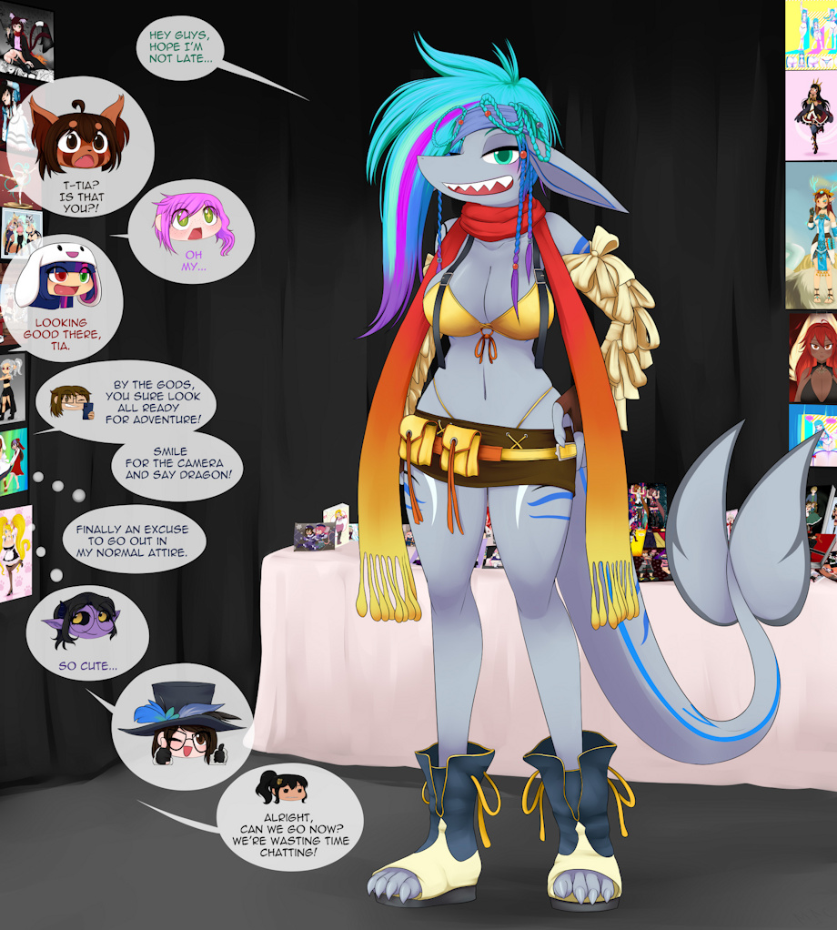 theheroofdarkness got a pic of their shark selves, cosplaying as Rikku from FFX-2, man that costume took forever to draw...