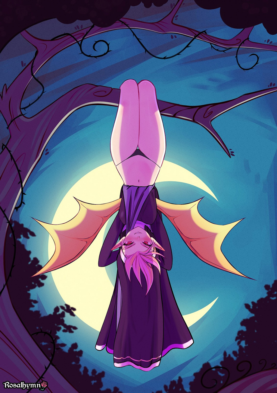 #MLP #mylittlepony #fluttershy #anime #art #wings #vampire #succubus #flutterbat #panties #nun #moon #tree #hanging #upsidedown #hips #legs #smile #smiling #animegirl
