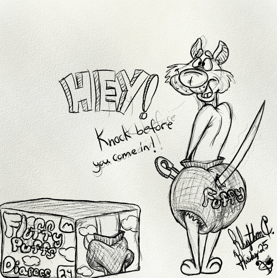 Went for a more Toony vibe with this drawing and of course thick toony diapers with a safetypin to finish the look.